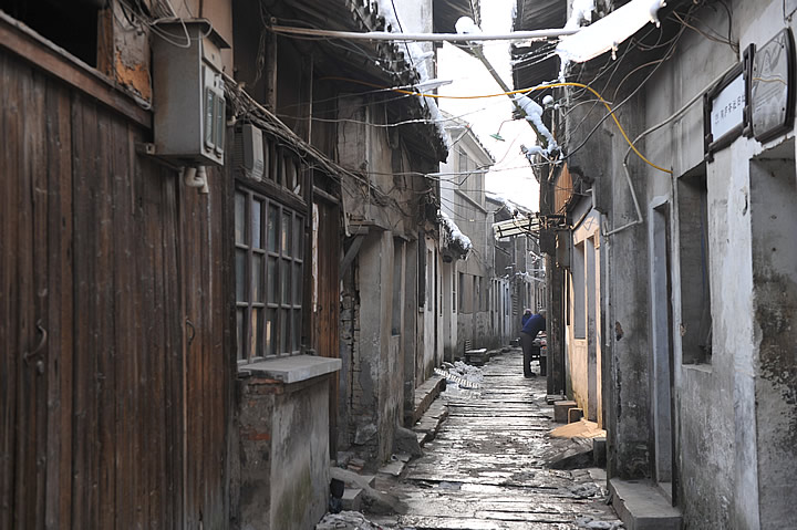 作为江苏省第一批古建筑保护单位和宜兴市文物保护单位的蜀山老街,旧时是繁华热闹的“紫砂一条街”。这里,过半的住户从事紫砂生产和经营。他们利用自己的住屋,后屋为制作生产坊,临街前屋则摆起货架设店经营。整个老街,足有三十余家紫砂陶器店,可见当时紫砂业的兴旺。除陶器店外,老街还有茶馆、布店、五金及小百货店,都以家庭为中心,他们相安无事,童叟无欺,过着与世无争的自足日子。老街边上的蠡河则停满了大大小小的木船,有渔民,有运输蔬菜的乡农,更多的则是陶瓷制品的运输船,通过这条河,把南街的陶瓷运到了四面八方。如果说,蜀山给了老街以厚重的支撑外,那么蠡河,则给了老街以延续的生机。